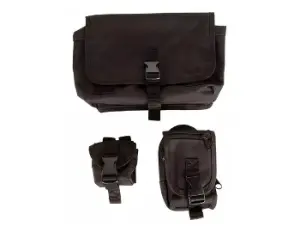 Store your gear on the go with this Molle Storage Bag System by Rugged Ridge®. Constructed out of heavy-duty polyester weave, these bags with durable closures help provide protection for your items. Designed for installation on MOLLE mounting systems (sold separately), the kit includes two large storage bags, two medium storage bags and two small pouches.