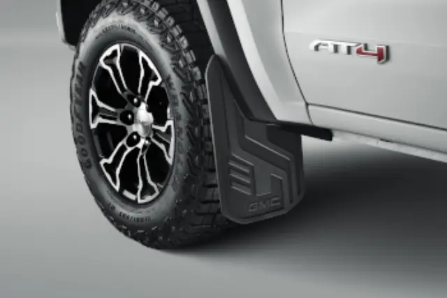 - Description: Help protect your vehicle from mud, gravel and road splash with GMC Accessories Rear Splash Guards. Constructed of 3/8-inch-thick textured rubber, they are designed, engineered and tested specifically for your vehicle. These mud flaps are flexible, yet durable and provide impact resistance while conforming to your fenders. Includes a set of two rear splash guards and all mounting hardware.