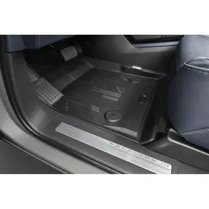 From the brand that knows your vehicle best, these Cadillac Accessories Premium All-Weather Floor Liners have been precision engineered to meet the exact fit and appearance standards of your interior. Unlike most conventional all-weather floor mats or rubber mats, these Floor Liners incorporate a 3-dimensional design specifically developed for your vehicle to help ensure maximum carpet coverage and provide a barrier to help keep messes contained. Molded grooves help channel debris, snow, mud and water away from the vehicles carpeting, as well as your feet and clothing. Sold as a set of floor liners for the first, second and third rows of your vehicle, they can cover previous wear of interior floors and help protect against future wear from everyday use. The Floor Liners feature a metal-plated tag with Cadillac logo, push-and-click fasteners and high-friction backing with a retention system. The interlocking design of the third row makes for easy removal and optimal carpet coverage. For models with executive seating. Includes five floor liners, two for first row, two for second row and an interlocking one for third row.